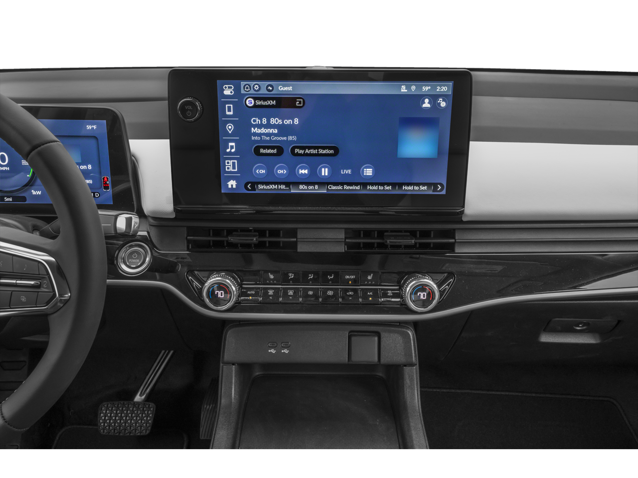 - Radio: Bose Premium Audio System -inc: 12 speakers, 11.3" color touchscreen display, Google built-in, wireless Apple CarPlay and Android Auto compatibility, Bluetooth® streaming audio, USB-C audio interface w/2 charging ports in front console, SiriusXM (All SiriusXM services require a subscription, sold separately by SiriusXM after the trial period, If you decide to continue service, the plan you choose will automatically renew at the then-current rates, Fees and taxes apply, See the SiriusXM customer agreement and privacy policy at www.siriusxm.com for full terms and how to cancel, which includes calling 1-866-635-2349, Available in the 48 contiguous U.S, and D.C, Some services and features are subject to device capabilities and location restrictions, All fees, content and features are subject to change, SiriusXM, Pandora and all related logos are trademarks of Sirius XM Radio Inc, and its respective subsidiaries), Wi-Fi hotspot capability, wireless phone charger and HondaLink connected by OnStar