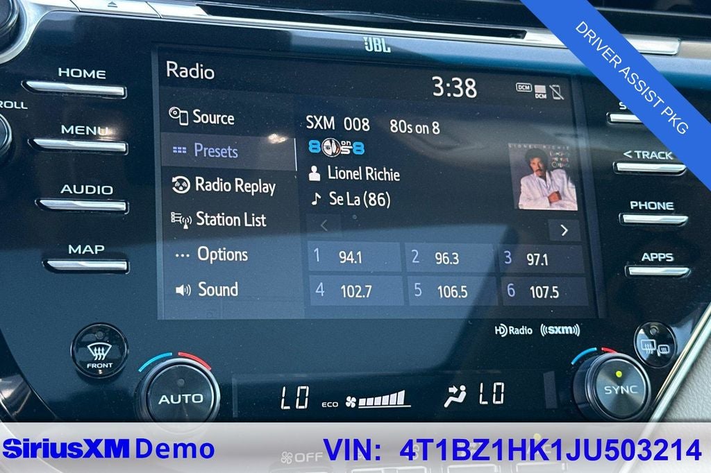 - Radio: Entune 3.0 Audio Plus -inc: JBL w/Clari-FI, Connected Navigation and App Suite, 8-inch touch-screen, AM/FM CD player, MP3/WMA playback capability, 9 speakers in 9 locations, auxiliary audio jack, USB 2.0 port w/iPod connectivity and control, voice recognition, handsfree phone capability and music streaming via Bluetooth® wireless technology, Scout GPS Link App w/moving maps w/3-year complimentary trial, Siri Eyes Free, Google voice controls, HD Radio, Entune App Suite, SiriusXM Satellite Radio w/3-month complimentary SiriusXM All Access trial, Gracenote album cover art, Entune 3.0 Toyota Connected Services, Safety Connect w/3-year complimentary trial, Service Connect w/3-year complimentary trial, Remote Connect w/6-month complimentary trial and Wi-Fi Connect Powered by Verizon w/up to 2GB within 6-month complimentary trial